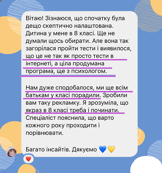 Всі профорієнтаційні тестування рекомендовано проходити не раніше 14 років. Це пов’язано з нейробіологічними віковими особливостями дітей.