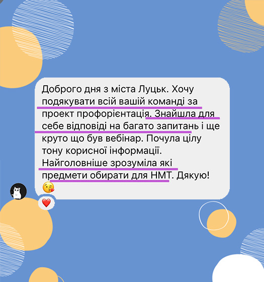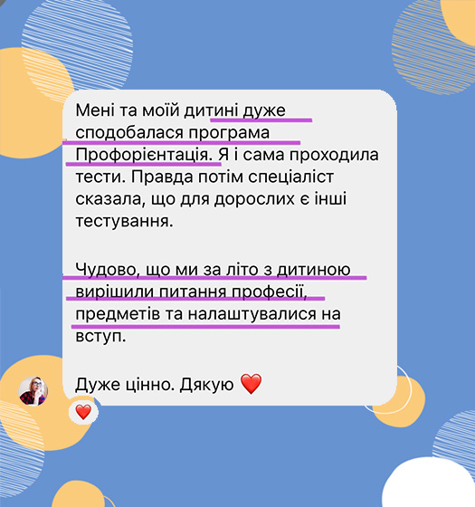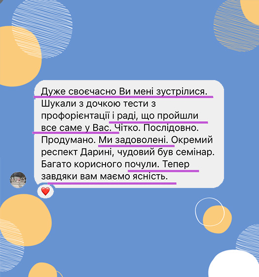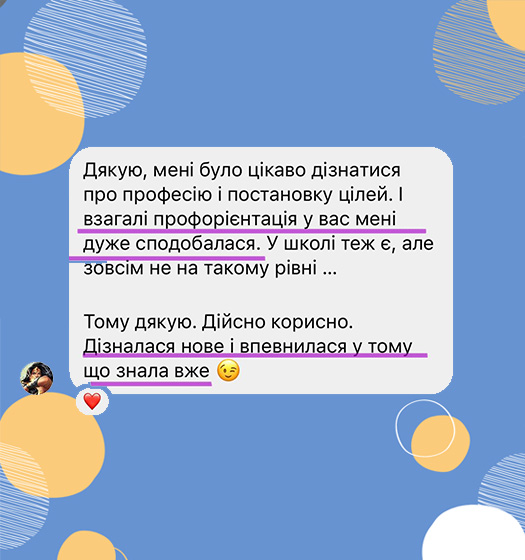 – онлайн-семінар за участю сертифікованого профорієнотолога і тьютора;